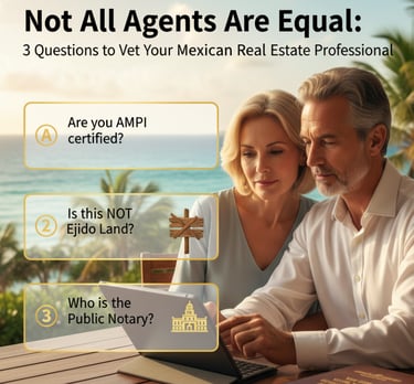 Why it matters: A knowledgeable agent will understand the critical difference between Ejido and Private Property. They should be able to instantly verify the property's status through the Public Registry or property deed. If an agent hesitates, dismisses your concern, or presents a "deal" that seems too good to be true without a Public Deed, it’s a massive red flag.